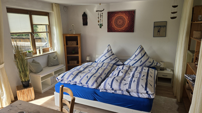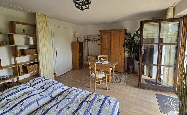 Das Doppelzimmer befindet sich im 1. OG mit eigenem Balkon.