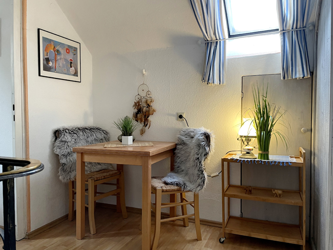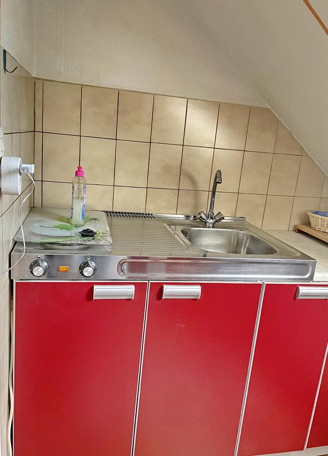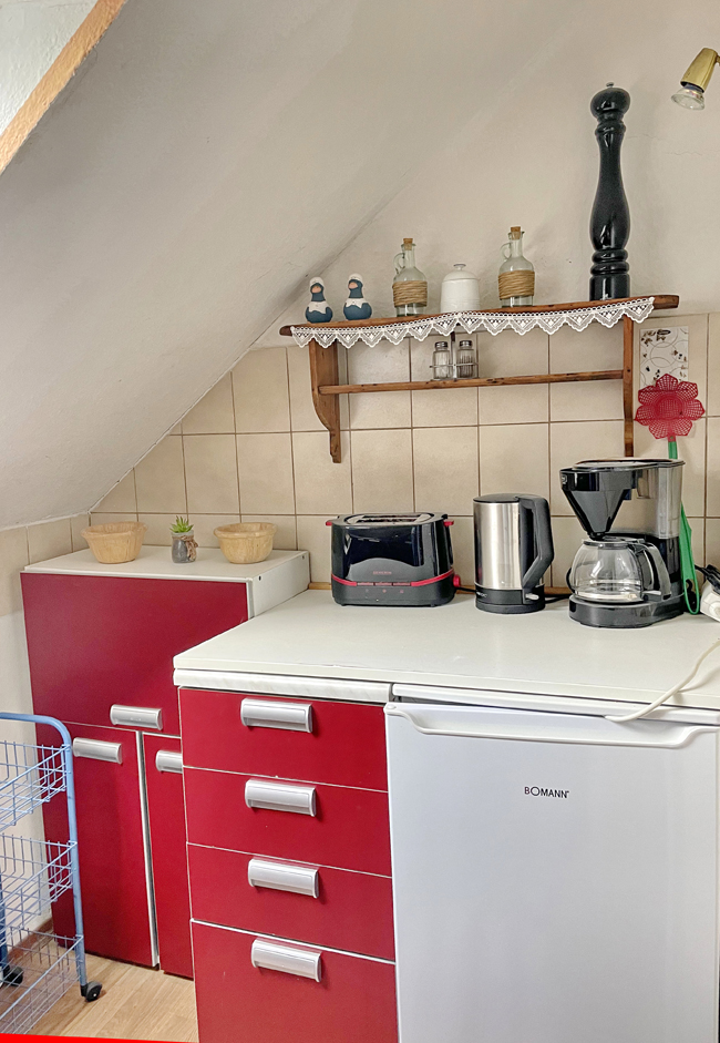 Das Bad und eine kleine Küche sind nicht im Zimmer sondern im 2. OG. So können Sie kochen